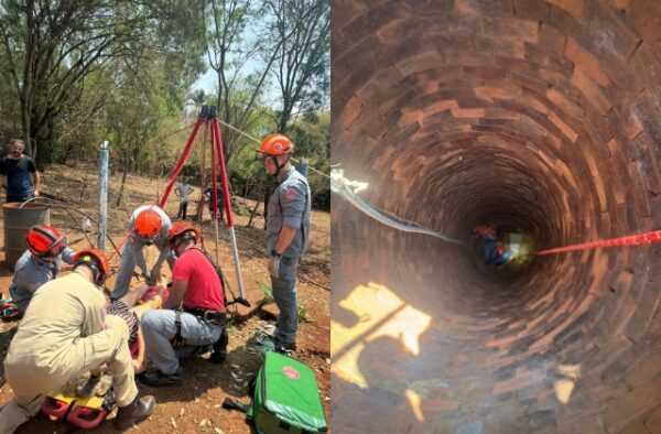 Idosa é salva pelos bombeiros após cair em poço de 8 metros
