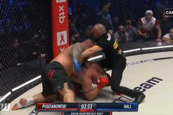 Logo no começo do enfrentamento, Hall encaixou uma sequência de bons golpes, deixando o polonês atordoado. O inglês conectou mais socos, levou a batalha para o chão e encerrou a luta, que foi interrompida através da intervenção do juiz. Assista: